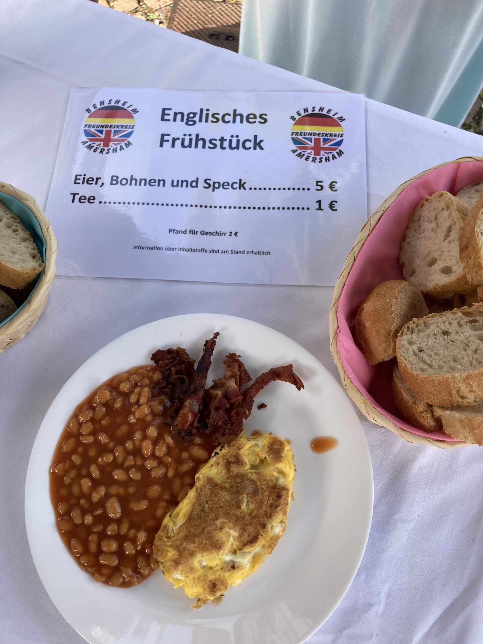 Wenn der Duft von gebratenem Speck über den Bensheimer Marktplatz zieht und einem das Wasser im Mund zusammenläuft, weiß man, es gibt wieder leckeres englisches Frühstück. Bereits zum 4. Mal bot der Freundeskreis im Rahmen des Bensheimer Marktfrühstücks knusprig gebratenen Bacon, Baked Beans und Scrambled Eggs. Ein erfolgreiches Format, das wir auch im nächsten Jahr fortsetzen werden. Die Termine werden rechtzeitig bekanntgegeben.