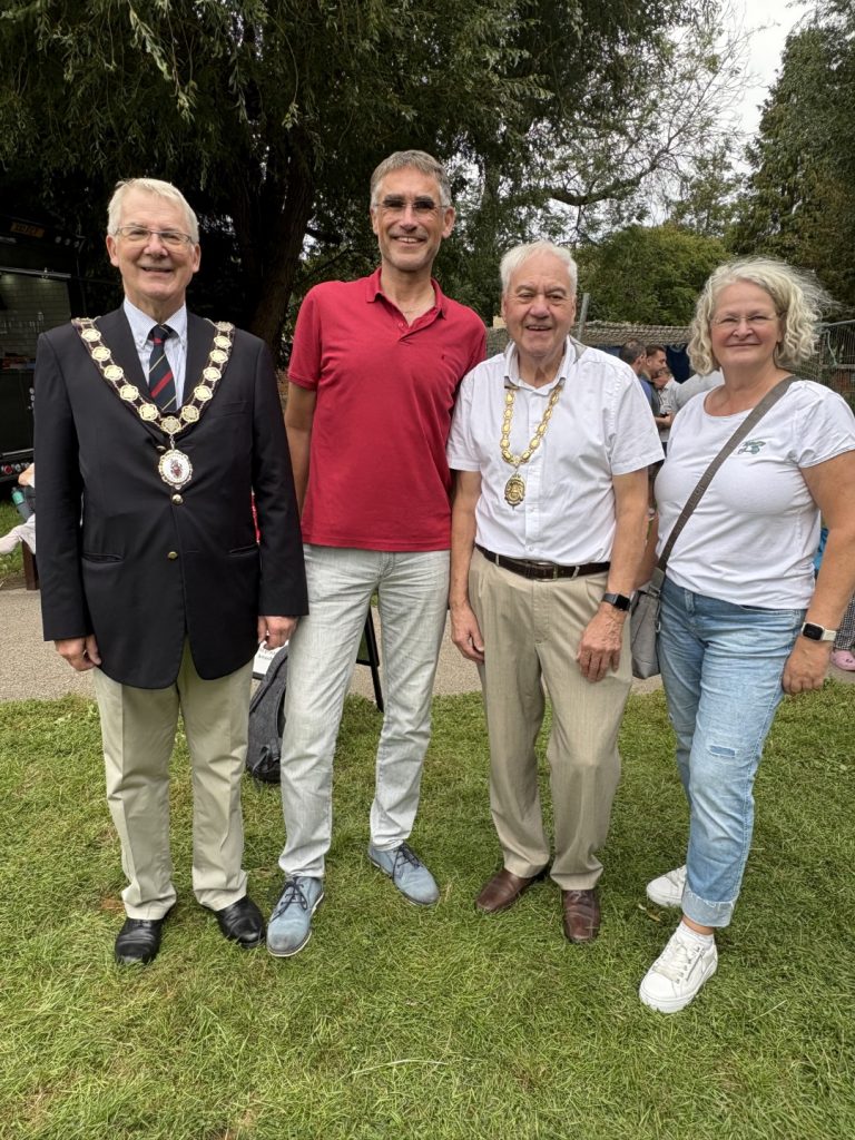 Die Mitglieder des Town Council schenken Tee aus und stehen den Bürger für Gespräche zur Verfügung oder kann sich dem neuen Mayor der Stadt, Simon Woodhead, fotografieren lassen.